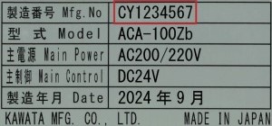 なお機種によって銘板シールの貼付位置が異なりますので、以下をご参照ください。