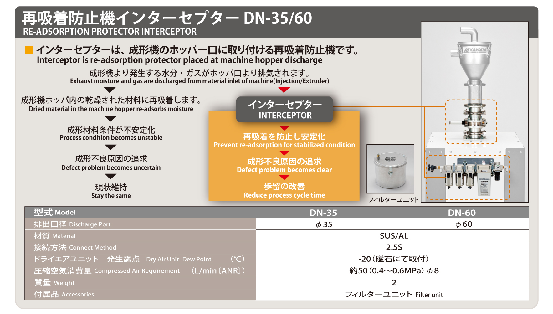 乾燥機 再吸着防止機 インターセプター DNシリーズ